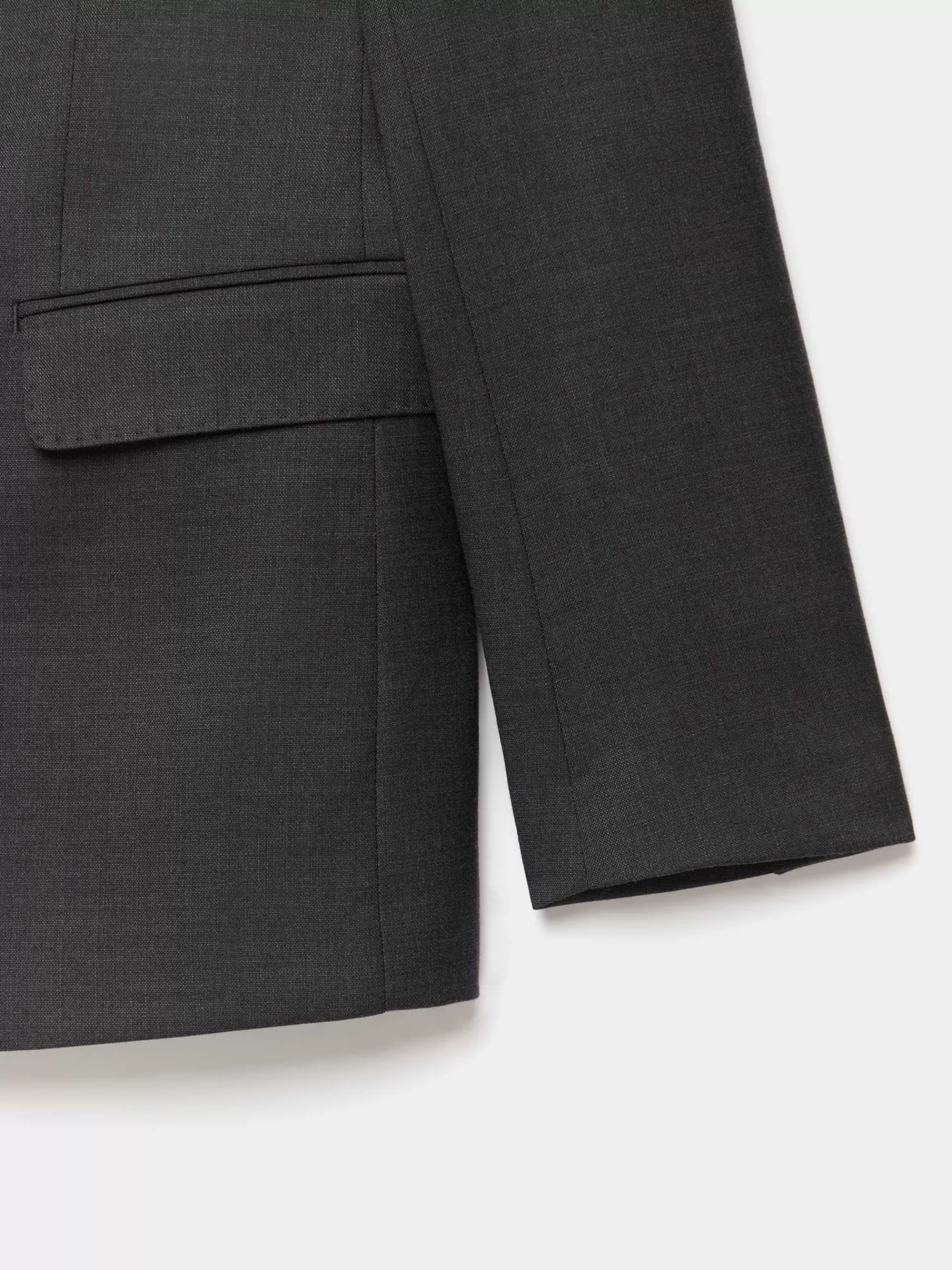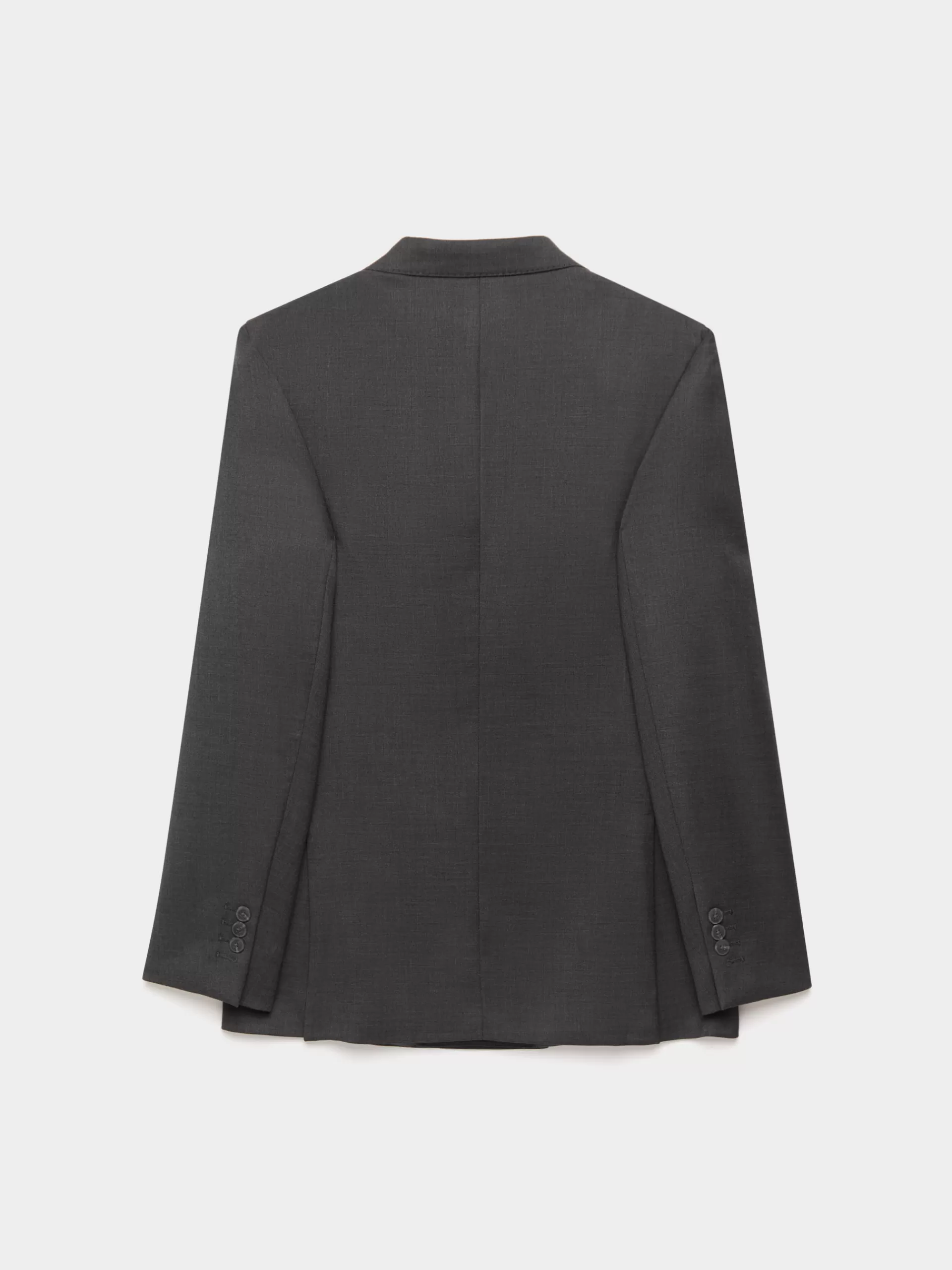 Americana con tejido fi fil de cierre central cruzado y con cuello y solapa. Bolsillo de ojal en el pecho, tres bolsillos de solapa en la cintura y puños con botones en su terminación. Pinzas en el delantero. Interior forrado y con bolsillos.