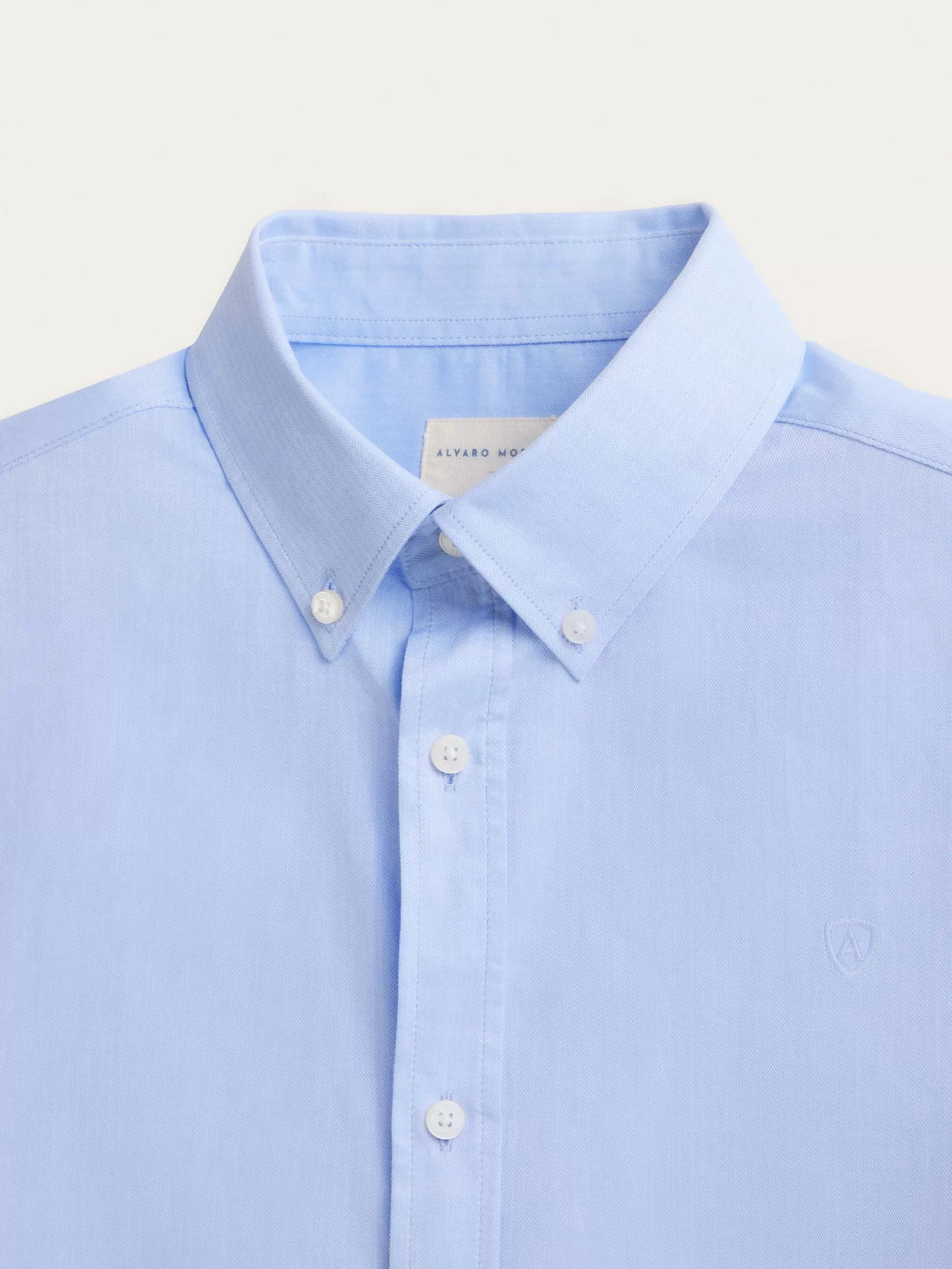 Camisa confeccionada en algodón con tejido de espiga. Cuenta con cuello clásico de botón, manga larga con puños simples y logo de la marca grabado en el frontal al tono. Corte regular fit.