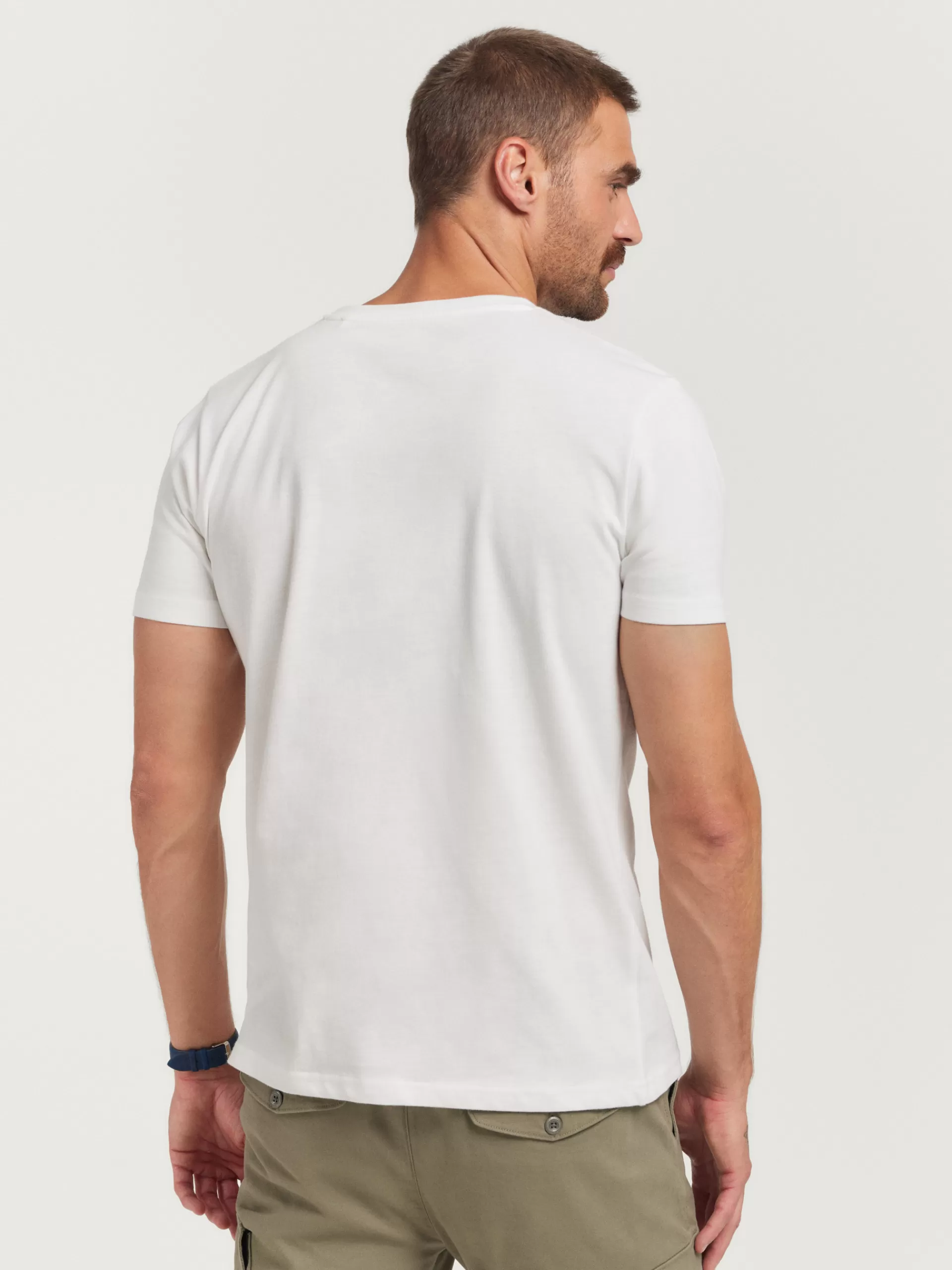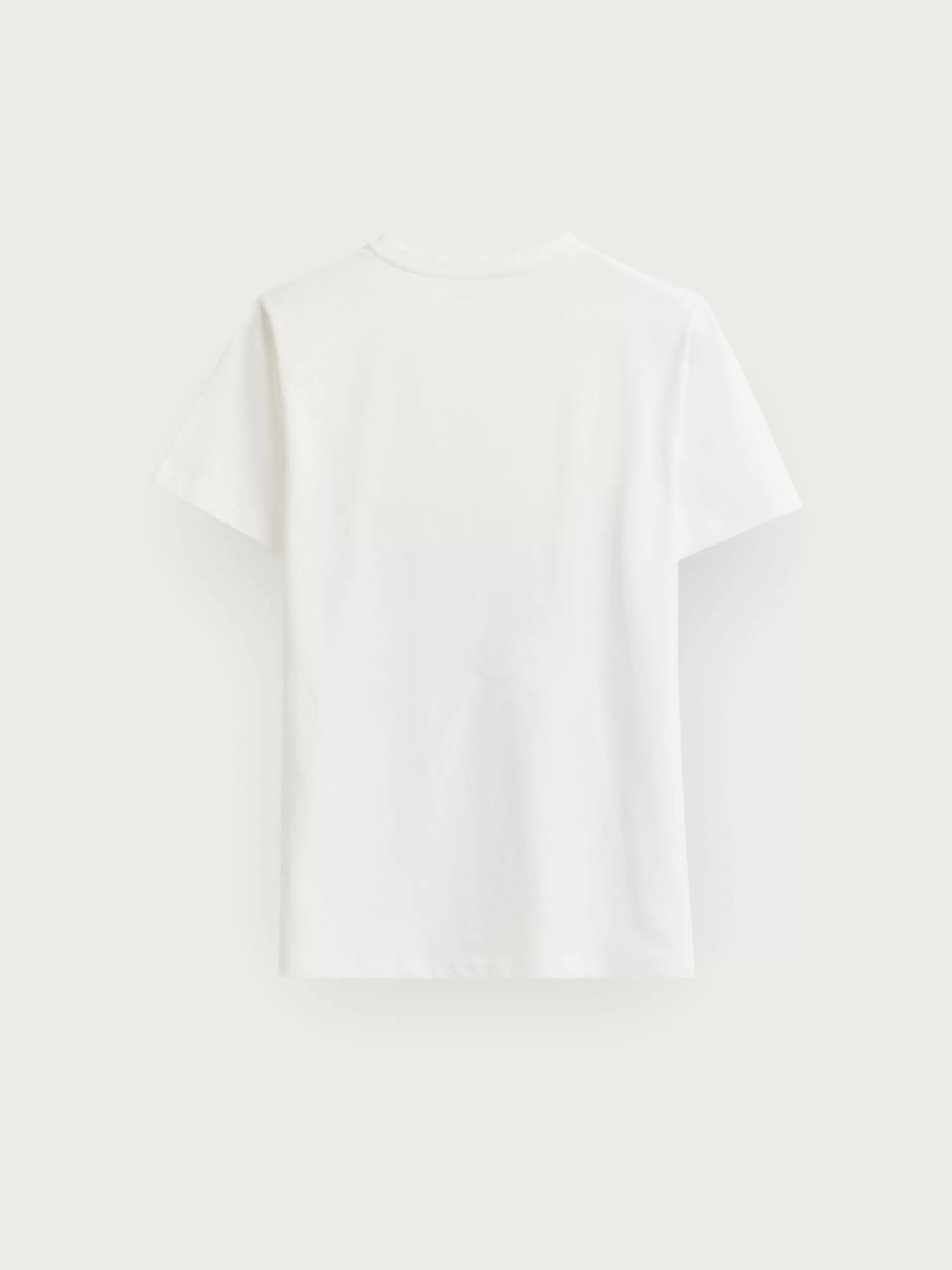 Camiseta con estampado personalizado en el frontal y en la parte trasera. Cuenta con cuello redondo, manga corta y corte regular fit.