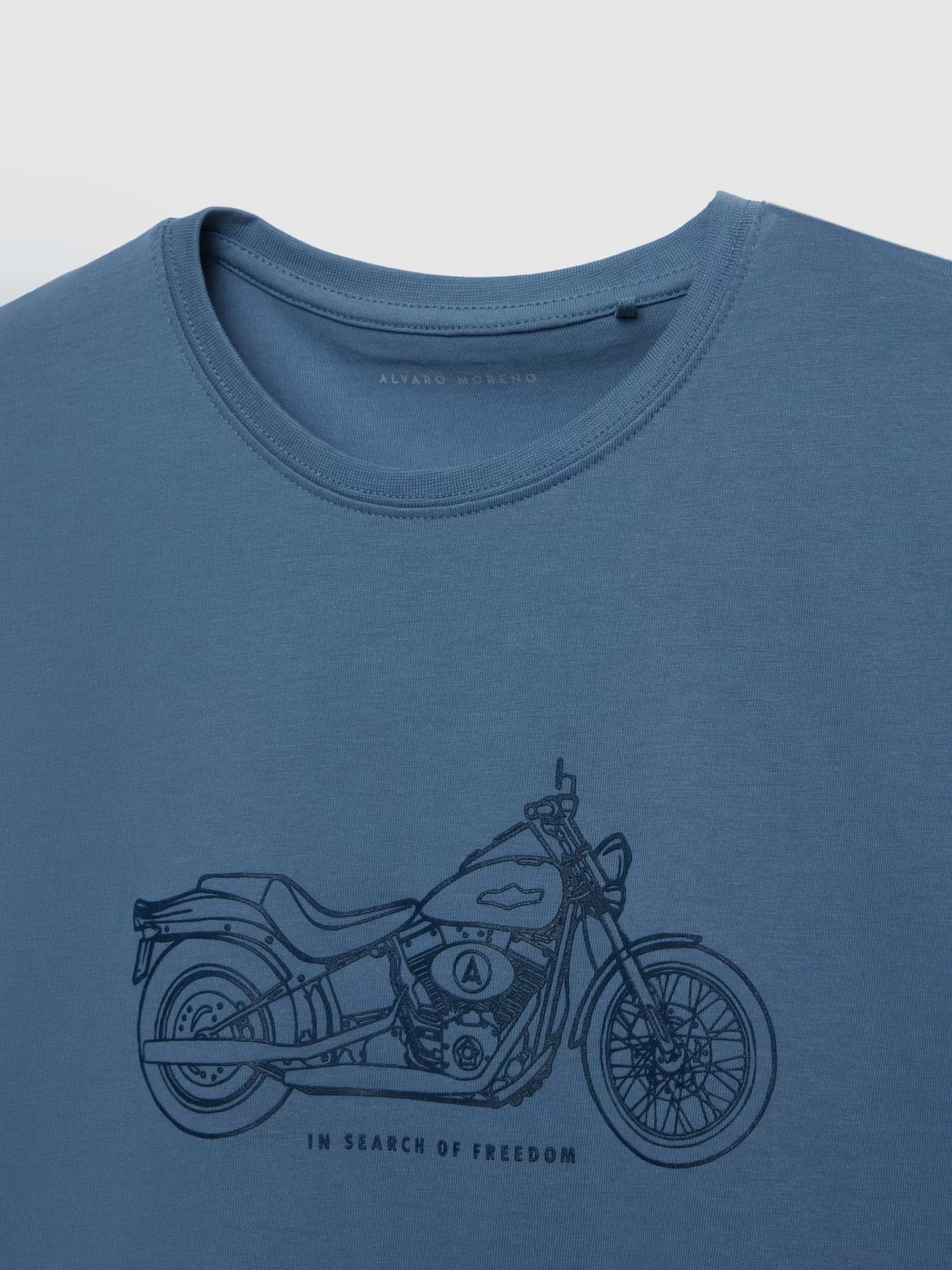 Camiseta con estampado personalizado en el frontal. Cuenta con cuello redondo, manga corta y corte regular fit.