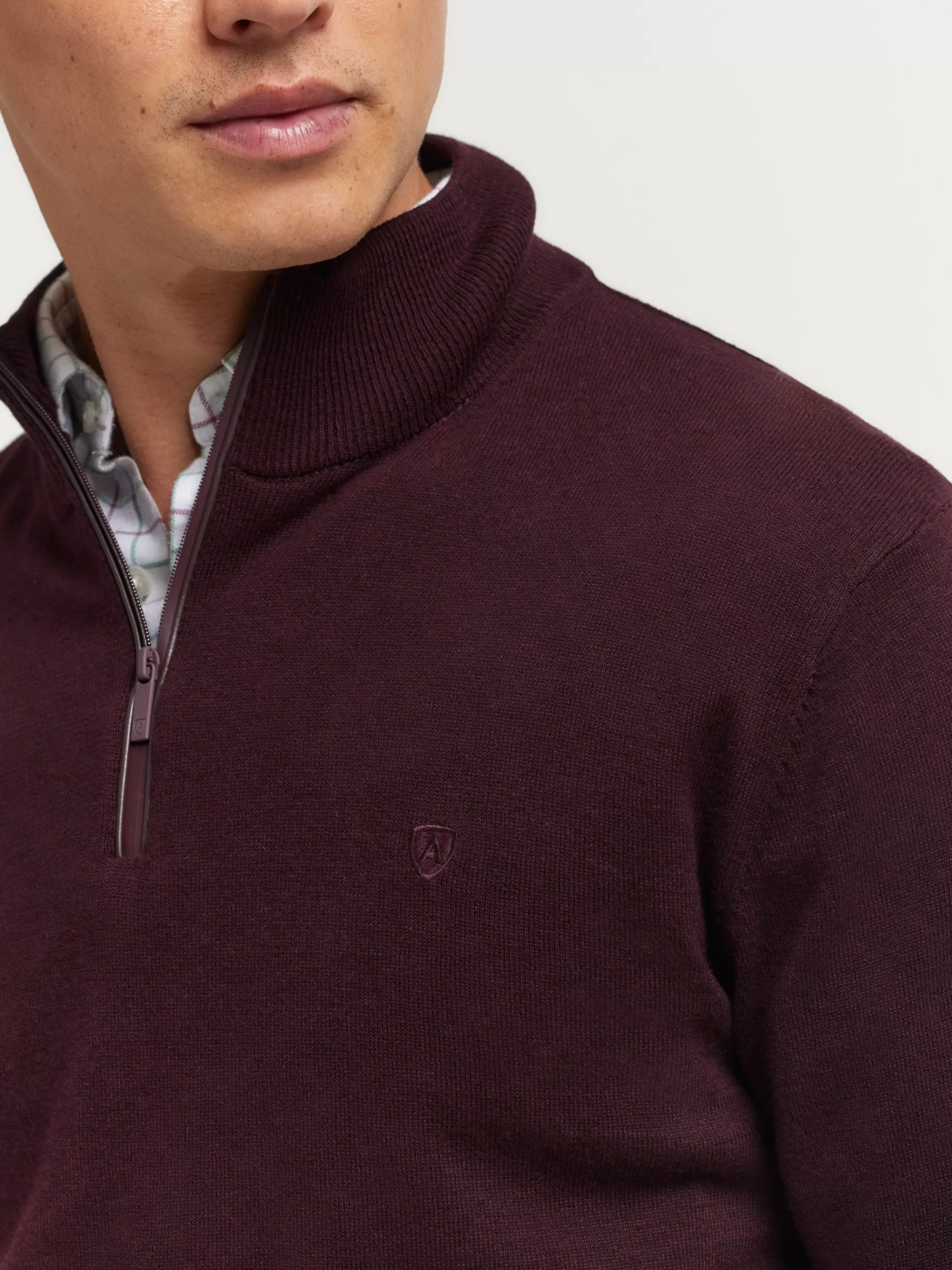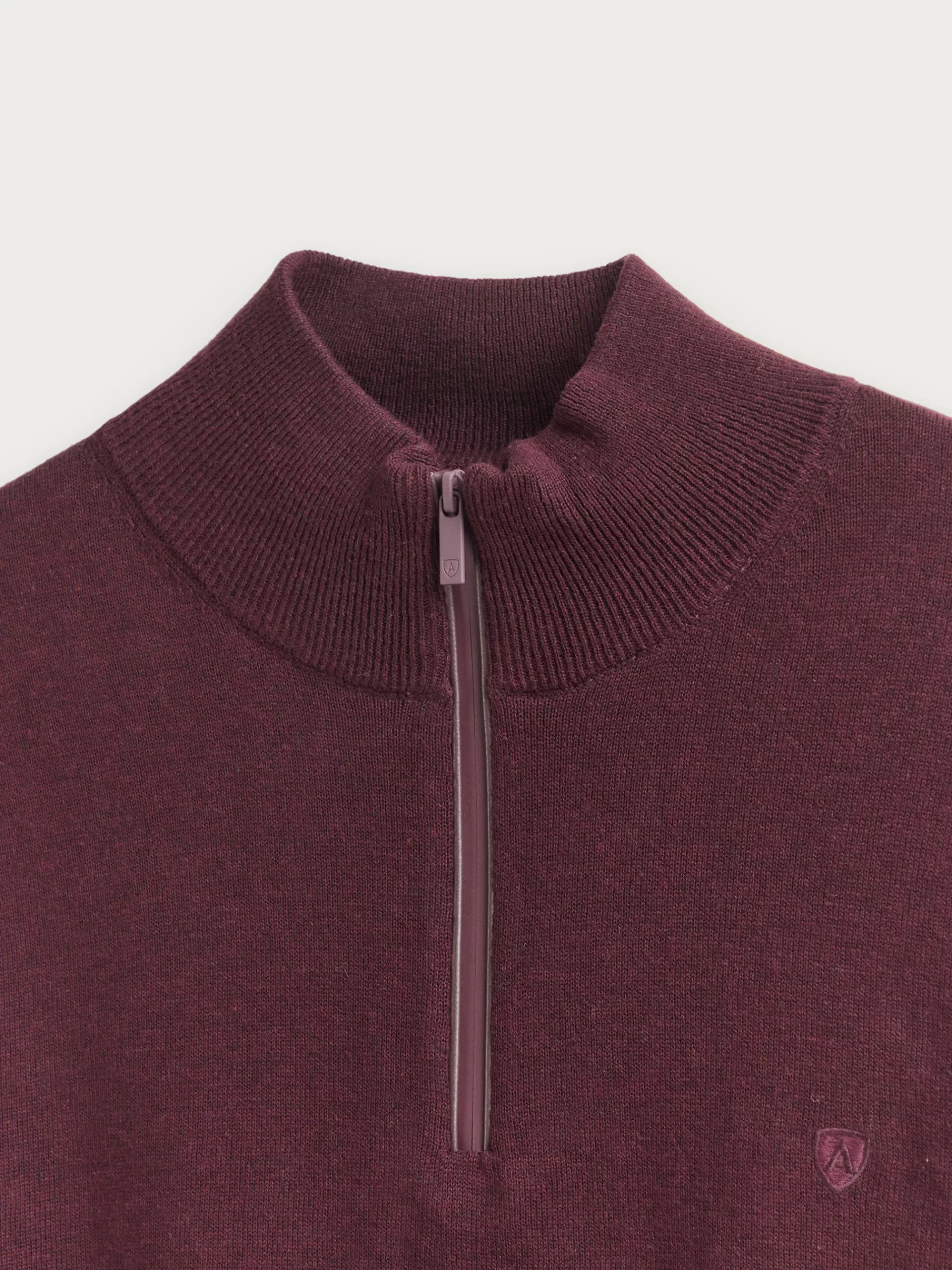 Jersey de corte regular confeccionado en algodón. Cuello alto con medio cierre de cremallera. Logo bordado en el frontal al tono. Cuello, puños y bajo en acabado elástico.