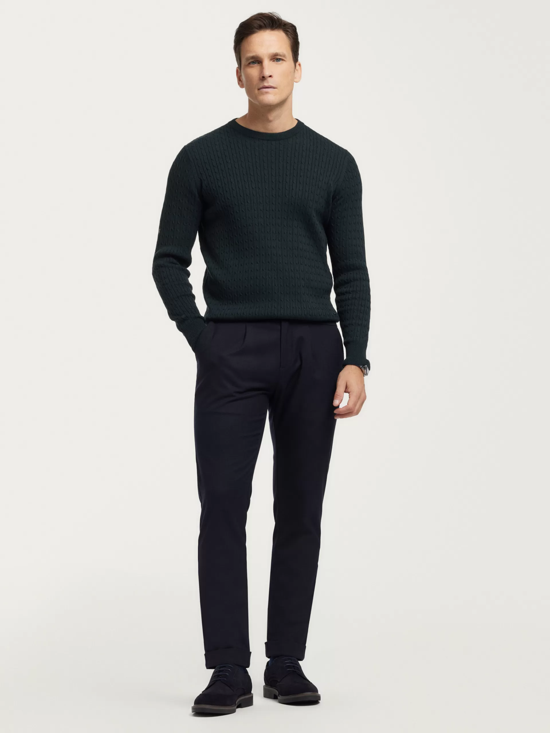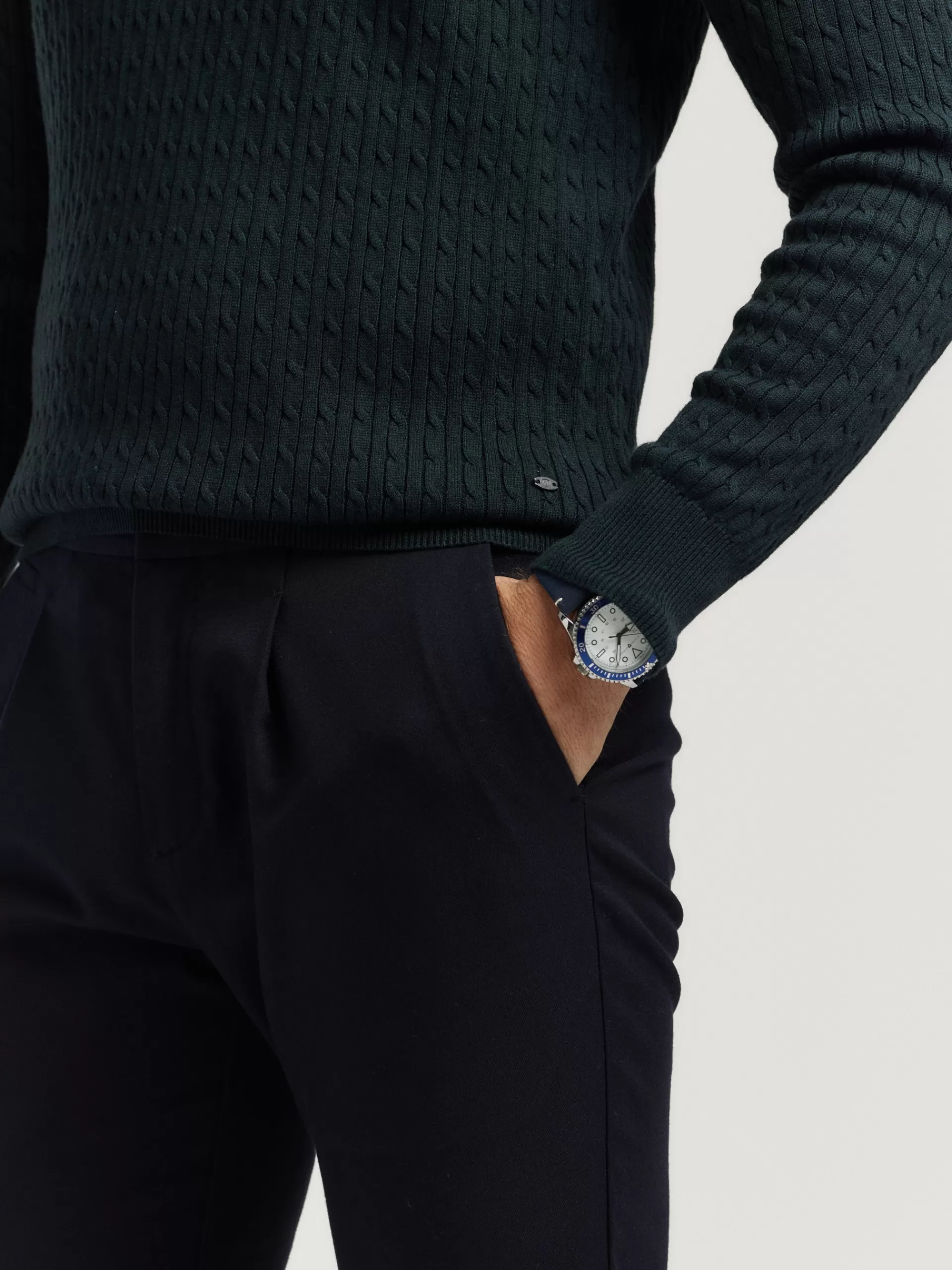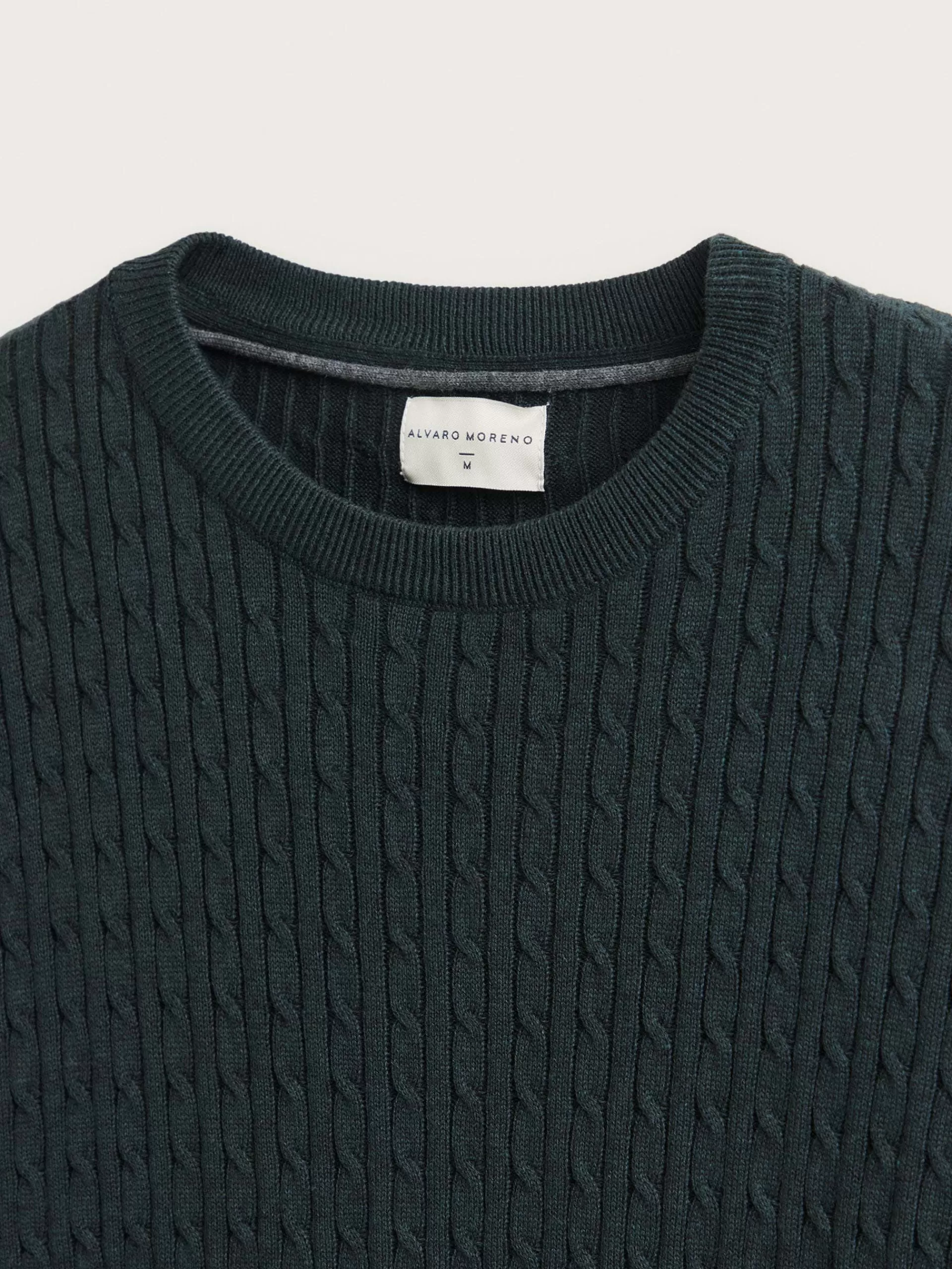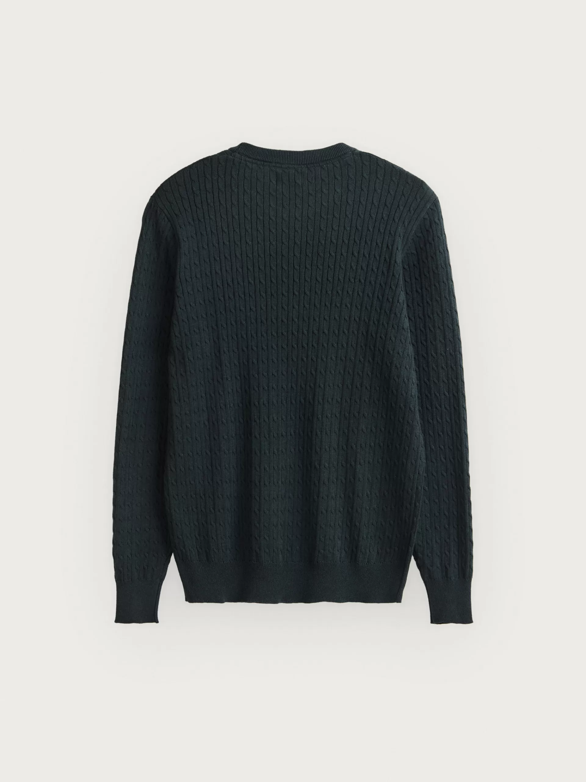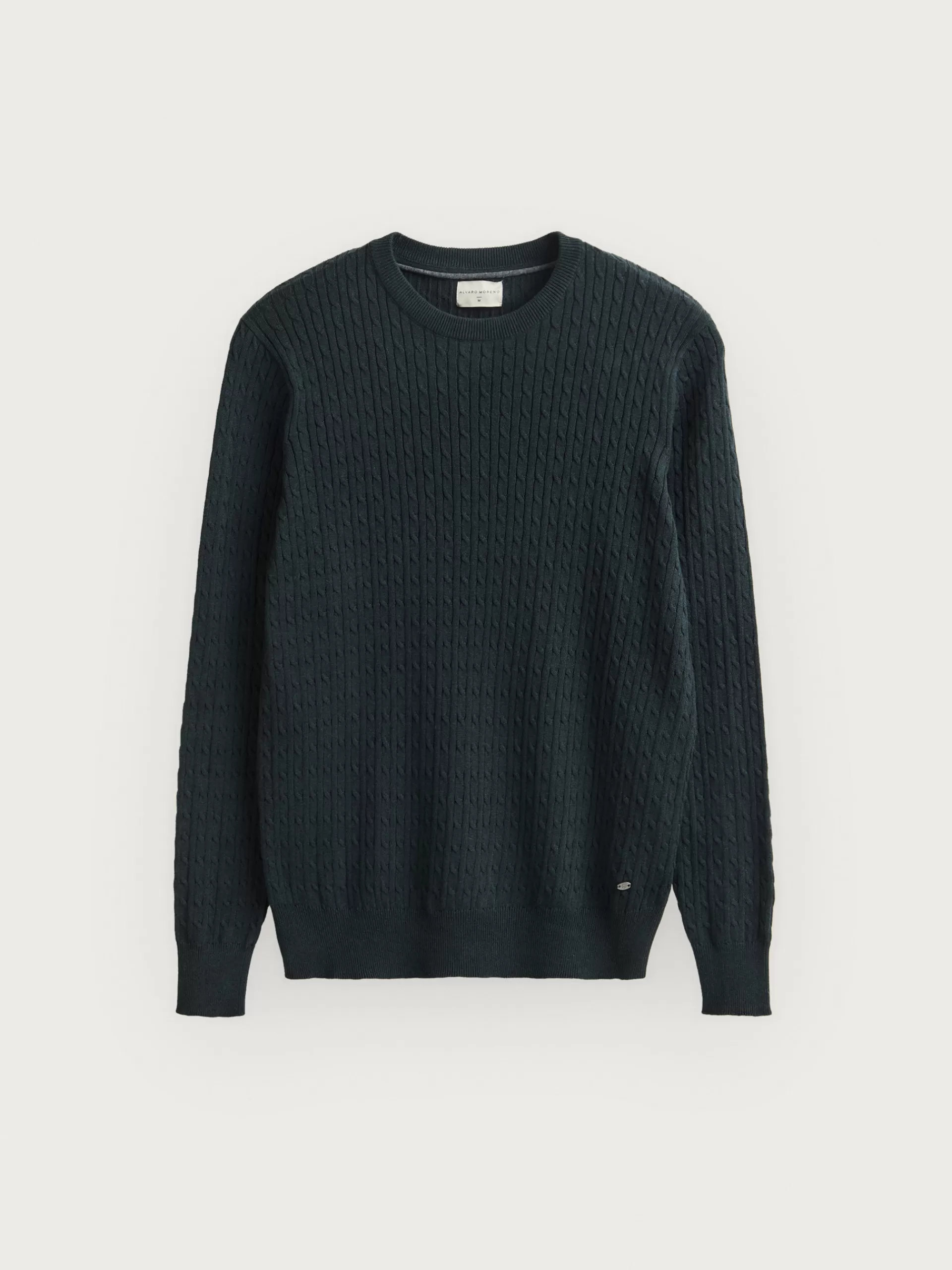 Jersey con estructura estilo ochos confeccionado en algodón. Cuenta con cuello redondo, manga larga y detalle metálico personalizado en el bajo. Cuello, puños y bajo en acabado ribeteado. Corte regular fit.