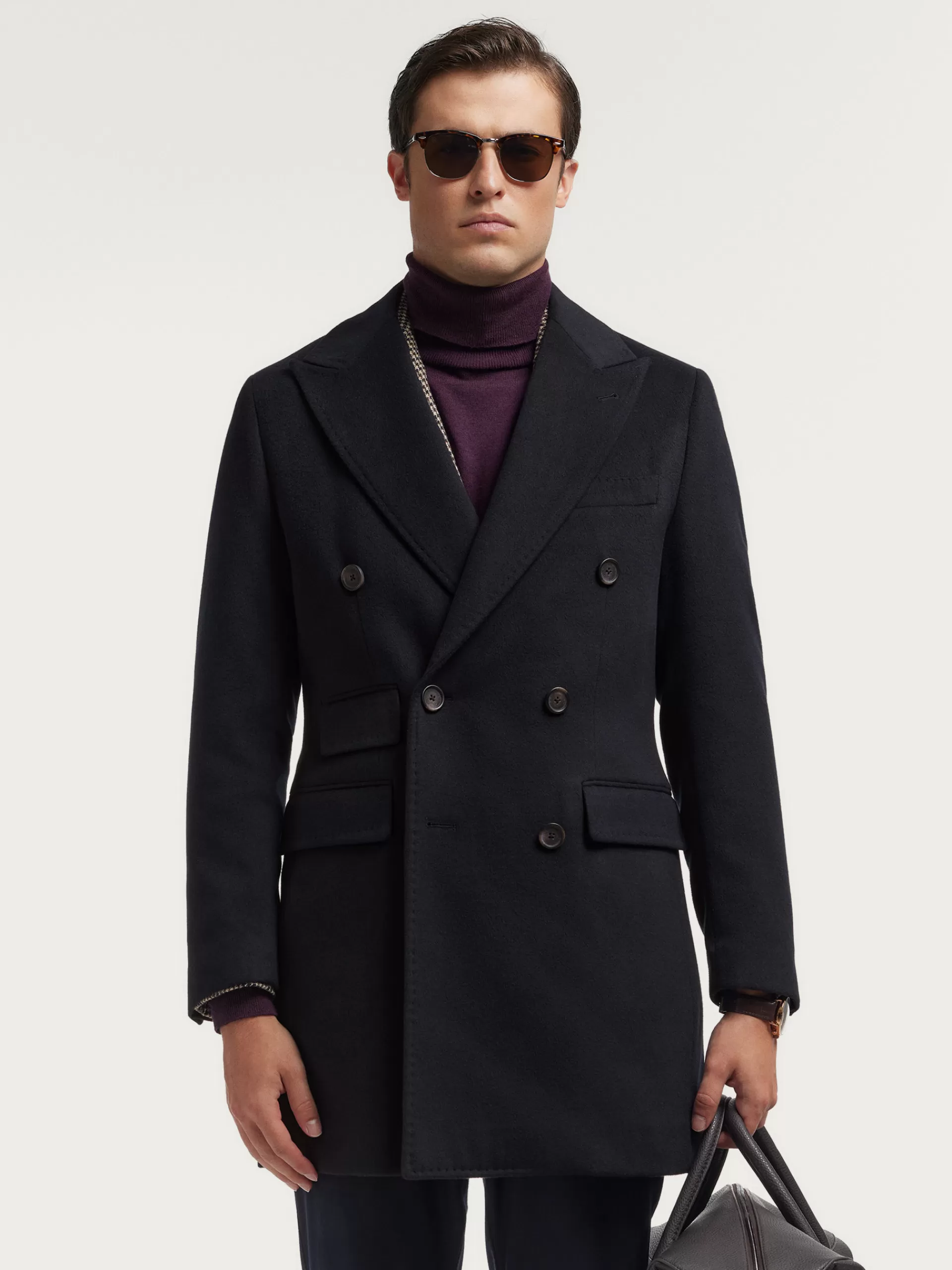 Abrigo largo de corte regular fit que cuenta con cuello y solapa, cierre central cruzado, ajuste martingala en la cintura-espalda, bolsillo de ojal en el pecho y dos bolsillos de parche en la cintura. Pinzas en el frontal y manga con terminación de botones. Abertura en el bajo. Forrado en su interior con dos bolsillos.