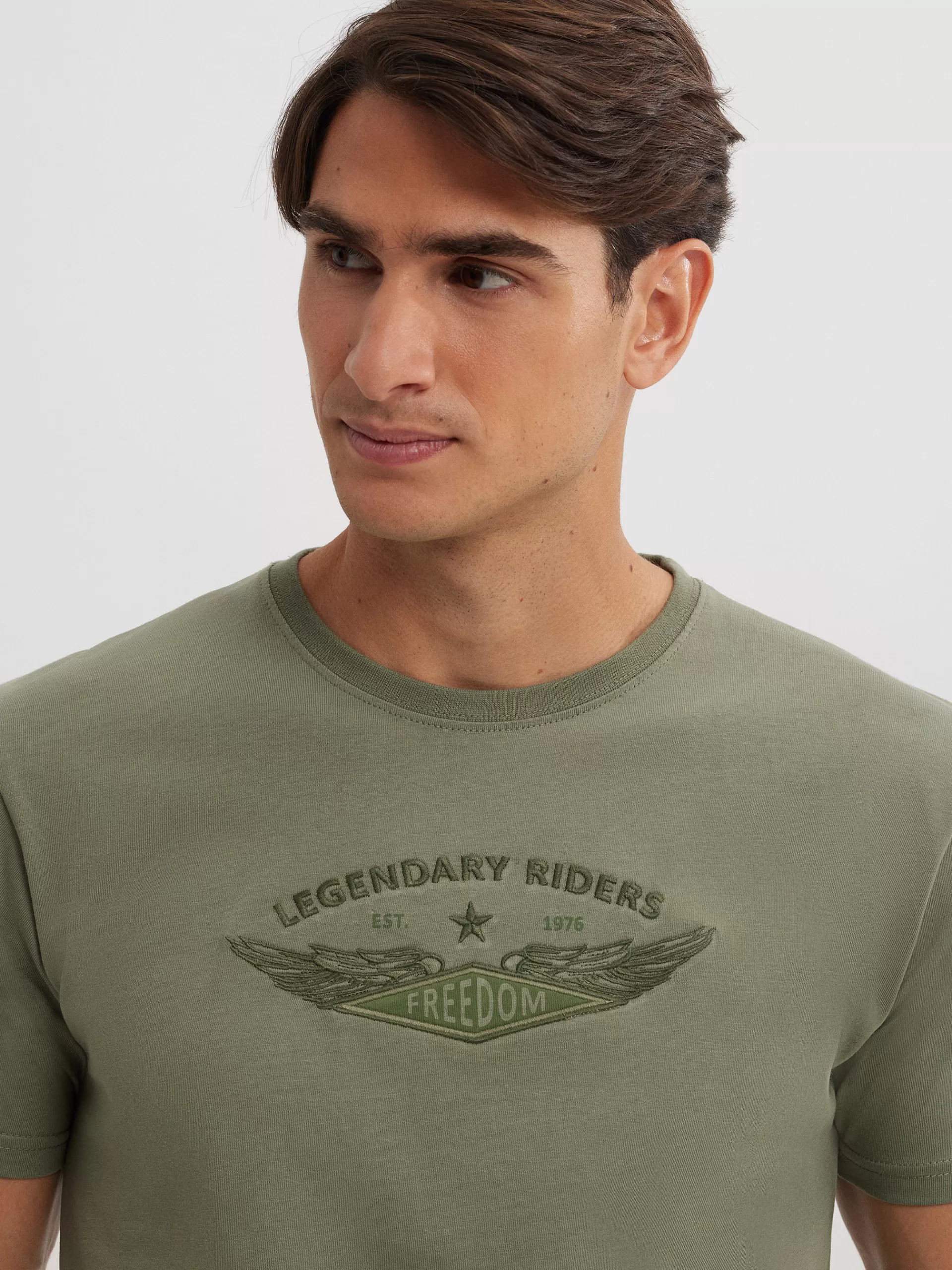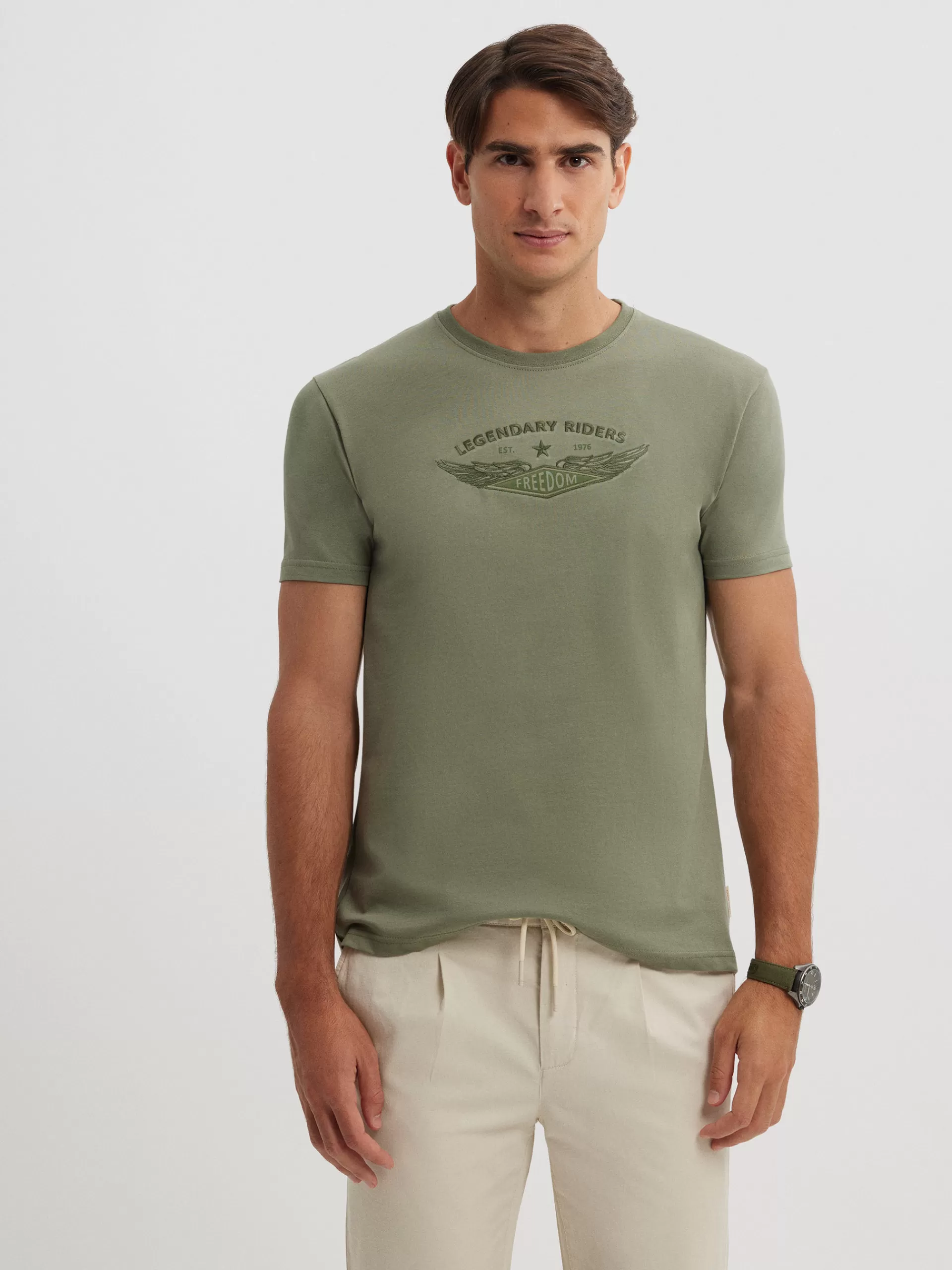 Camiseta con estampado personalizado en el frontal. Cuenta con cuello redondo, manga corta y corte regular fit.