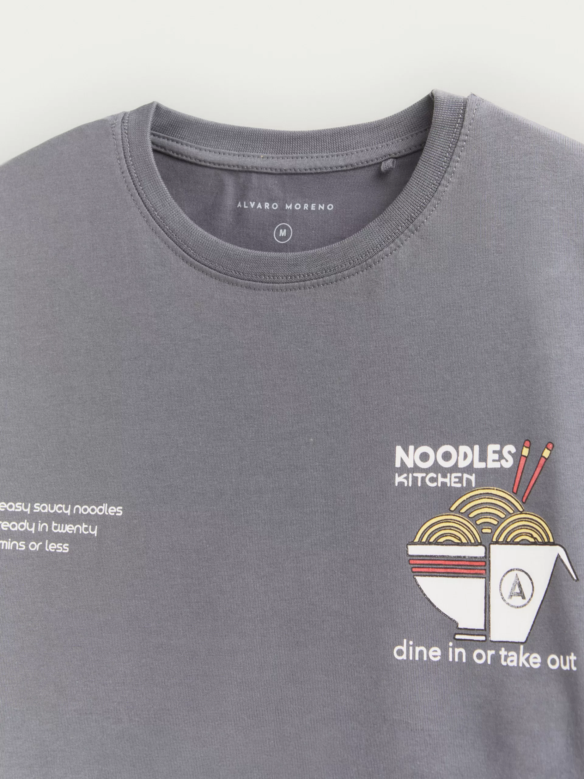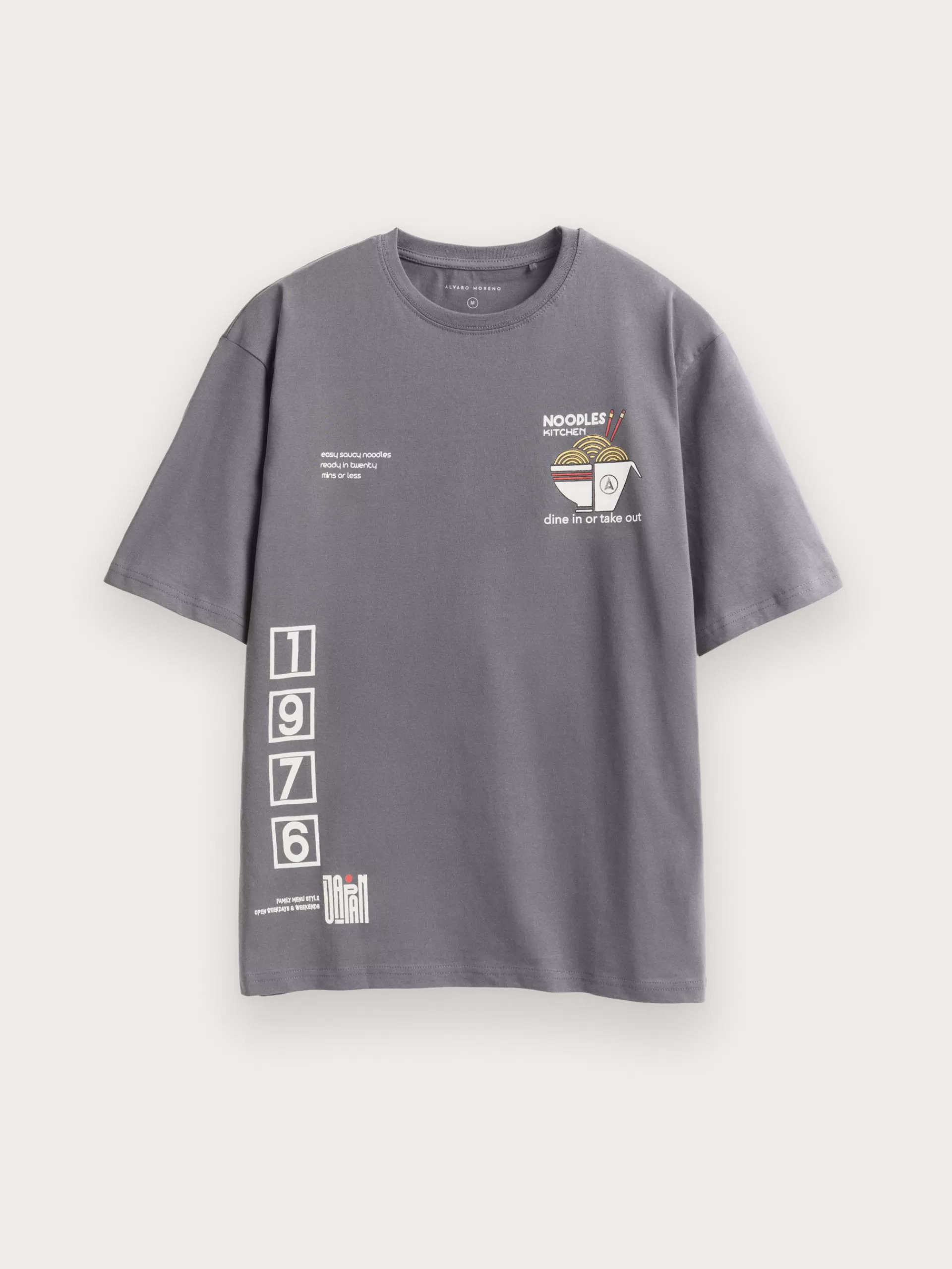 Camiseta con estampación personalizada en el frontal y en la parte trasera. Corte relaxed fit aportando un corte más relajado. Cuello redondo y manga corta ligeramente más anchas y largas.
