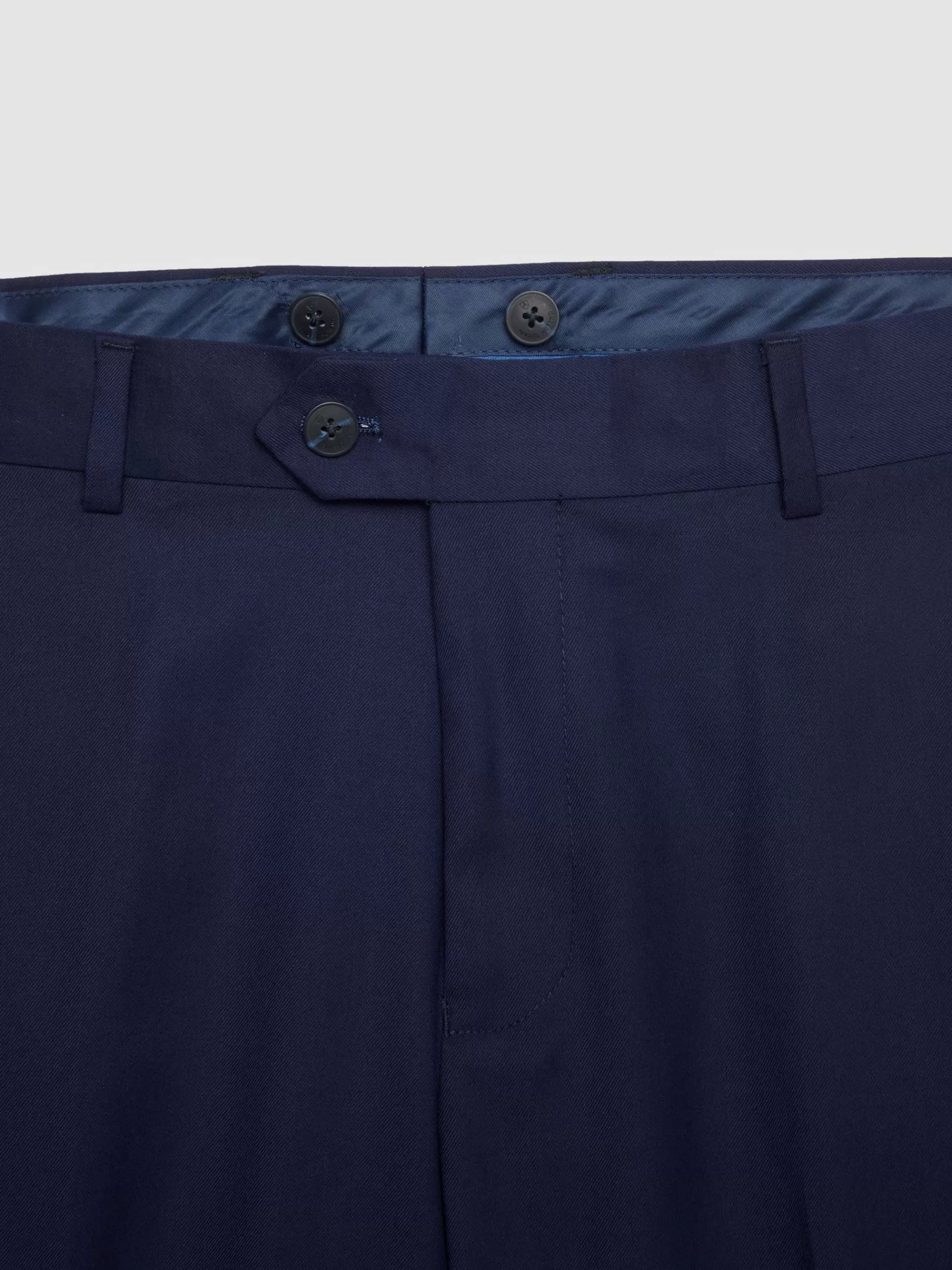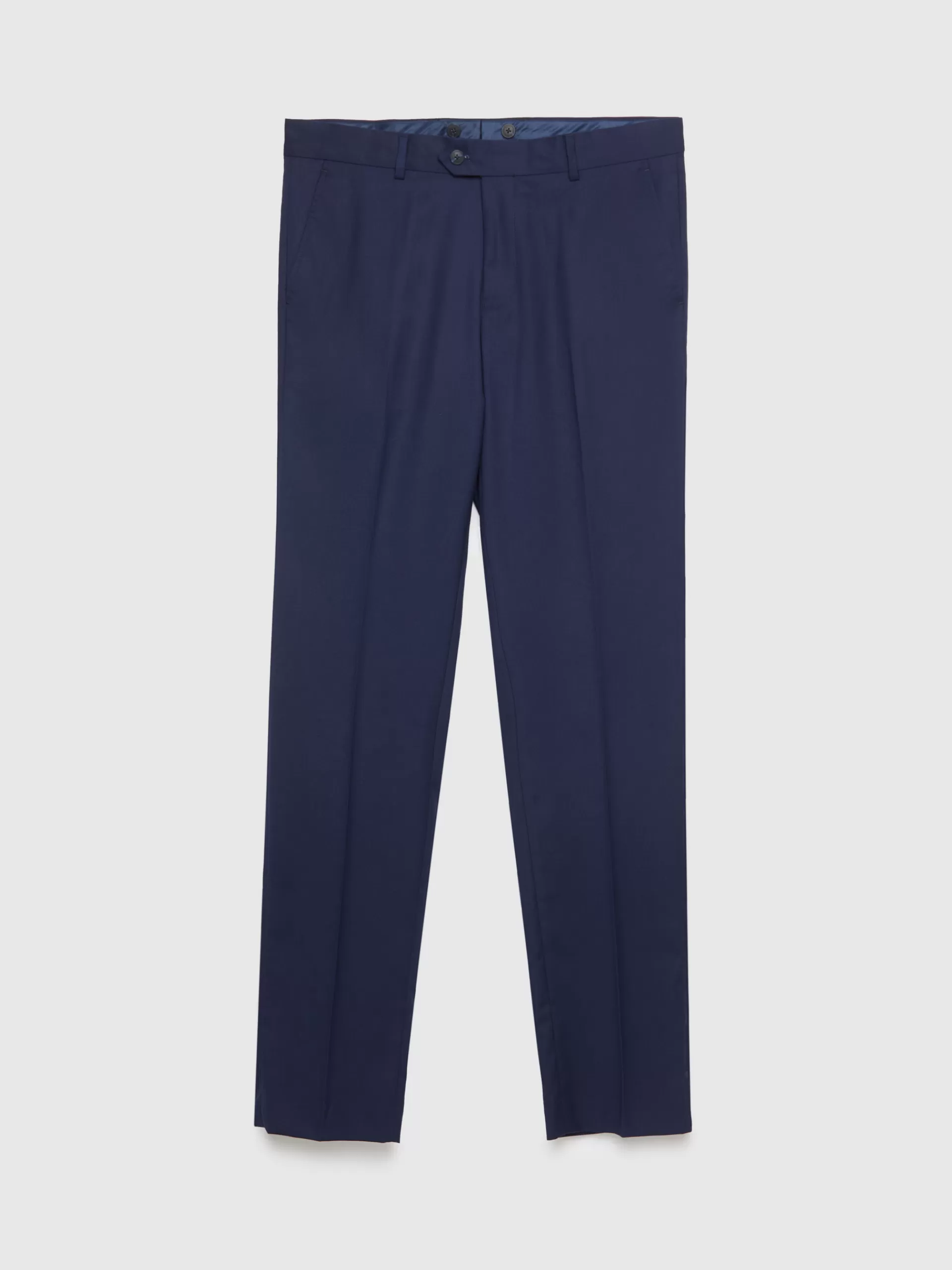 Pantalón de traje que cuenta con cierre frontal de cremallera y botones, dos bolsillos abiertos en la parte delantera y dos bolsillos traseros con cierre mediante botón. Forrado en su interior.