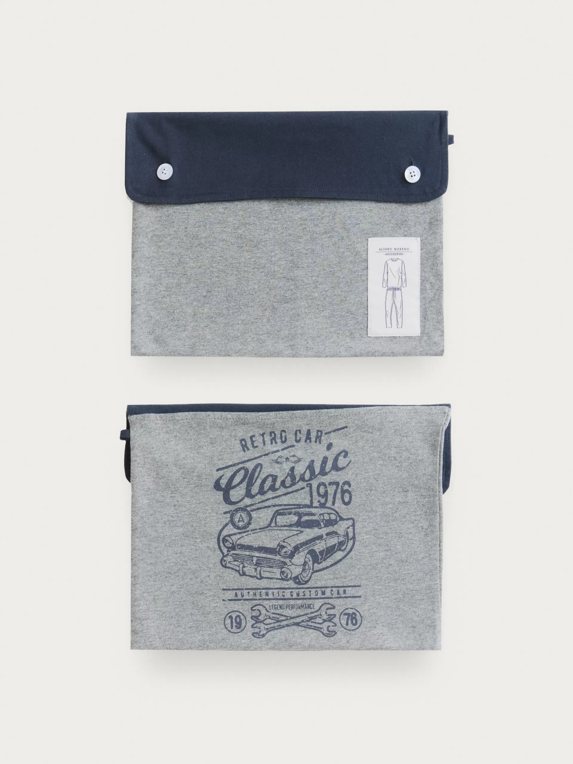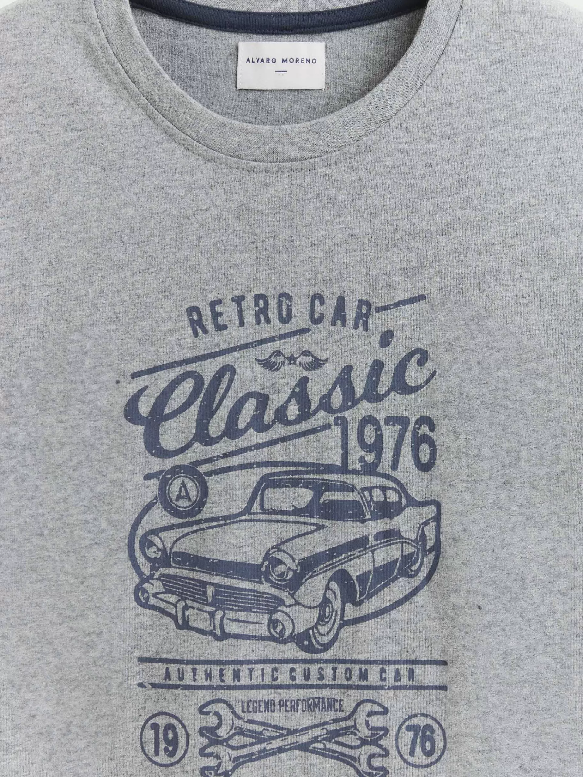 Pijama compuesto por dos piezas, superior e inferior. Parte superior camiseta de manga larga con cuello redondo y estampación personalizada en el frontal. Pantalón liso con cinturilla elástica y cordón ajustable.